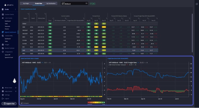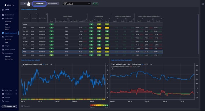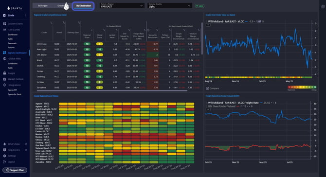 - See traditional grade-on-grade evaluations to assess current crude quality advantages and refiner value premiums.
